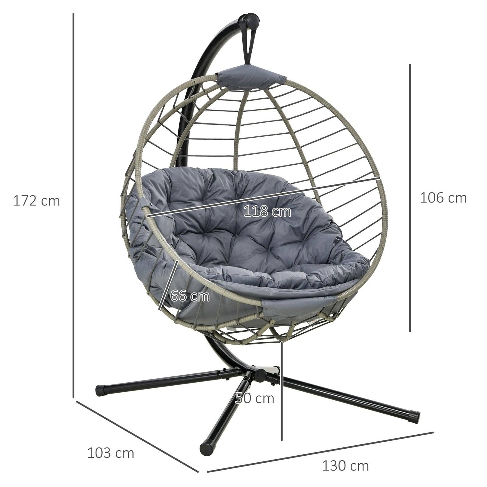 Make the most of your lazy days - do it with this Outsunny egg swing chair with stand. The curved back, spacious seat and soft padded cushion make this a super comfortable piece to relax in whenever you want. Made from steel, the frame is strong, with a four long-legged base to help keep the balance. The seat basket can be taken off the frame and folded up - so when the sunny season is over, or you want to change up your outdoor space, you can store this chair away easily.