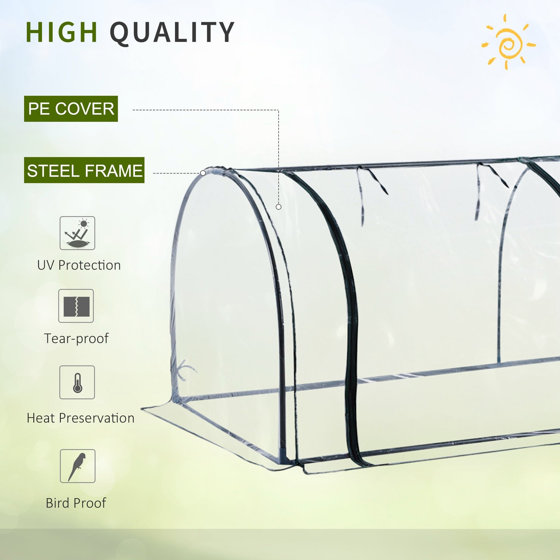 Grow plants, vegetables, fruit and flowers safely all year round with this long tunnel greenhouse from Outsunny. With a powder coated steel frame for strength and durability, it features a durable cover, helping to protect plants from cold, whilst providing plenty of sunlight for them to nourish and grow. The cover also features zipped doors, providing you easy access and ventilation throughout. Lightweight enough to be moved around, this greenhouse is perfect for gardens, patios, balconies and allotments.