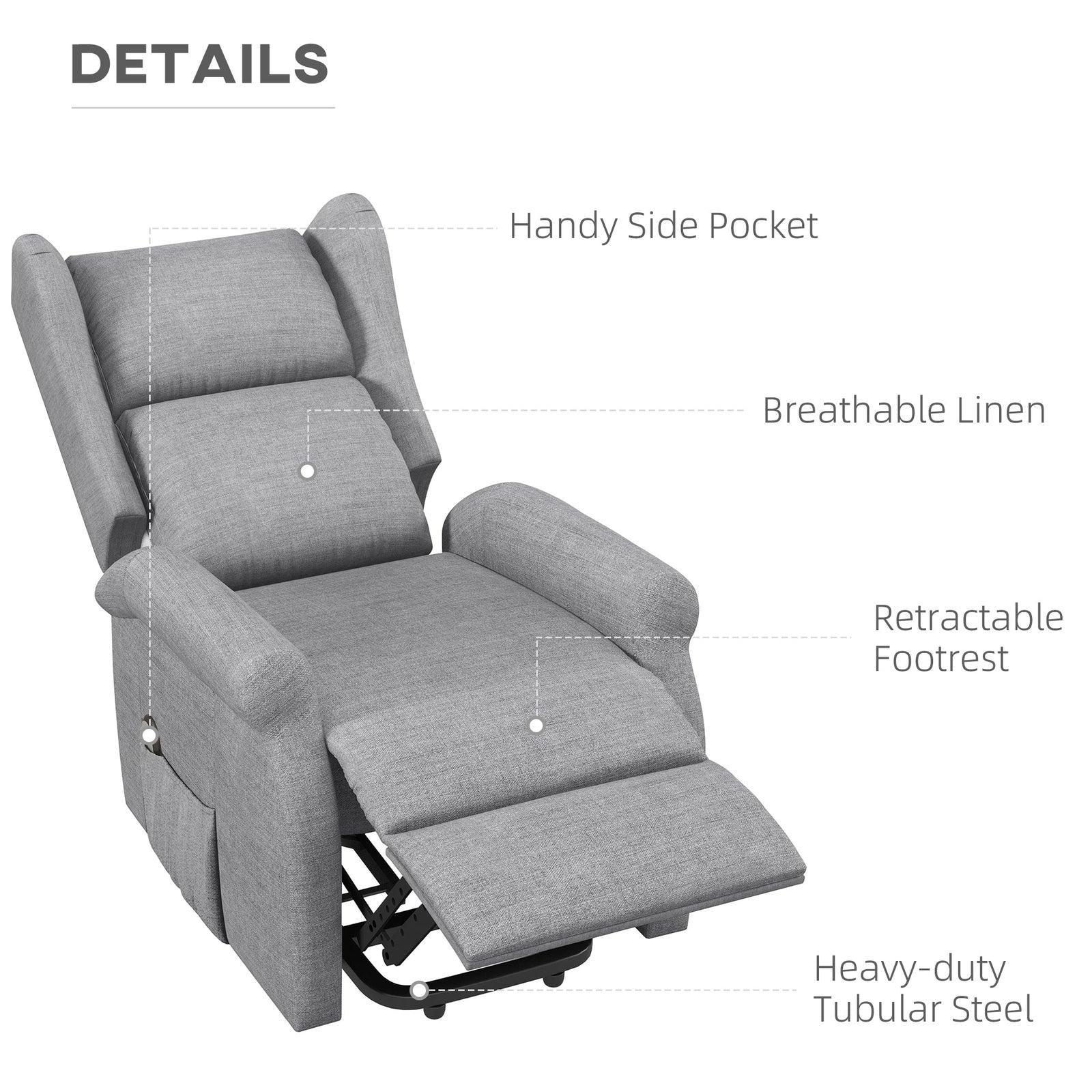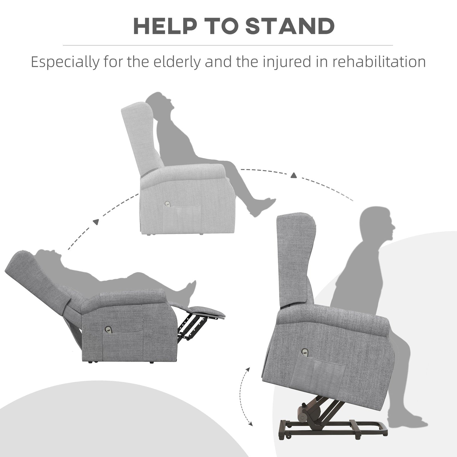 Bring assistance into your life whilst keeping your independence: look to this HOMCOM lift-up armchair. Steel forms the frame for a strong structure which supports up to 200kg. Thickly padded all over to keep you comfortable, it features a 135° reclining back and footrest: control them with the remote to set chair in a position you want. The gentle lifting angle makes it easy to sit down and get out of the chair. Finished with smooth linen-look upholstery.