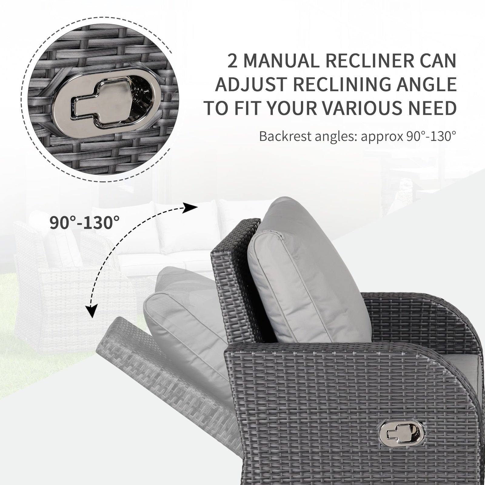 Rattan Garden Furniture 7 Seater Sofa & Coffee Table Footstool Set Outdoor Patio Wicker Weave Reclining Chair Space-saving - Light Grey