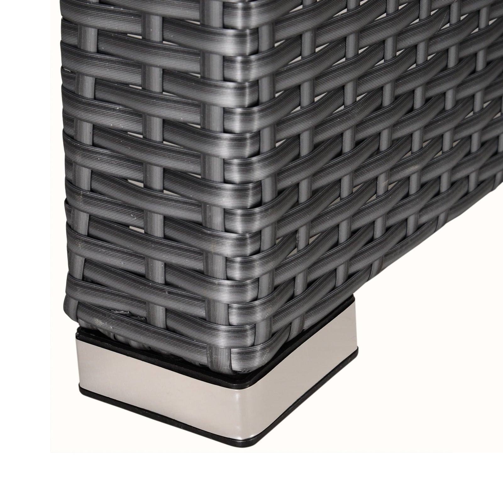 - Powder coated steel frame for strength, wrapped in UV and water-resistant PE wicker rattan Thick, foam padded seat cushions for enduring comfort as you sit and relax, with removable and washable covers Anti-slip foot pads for balance and floor protection