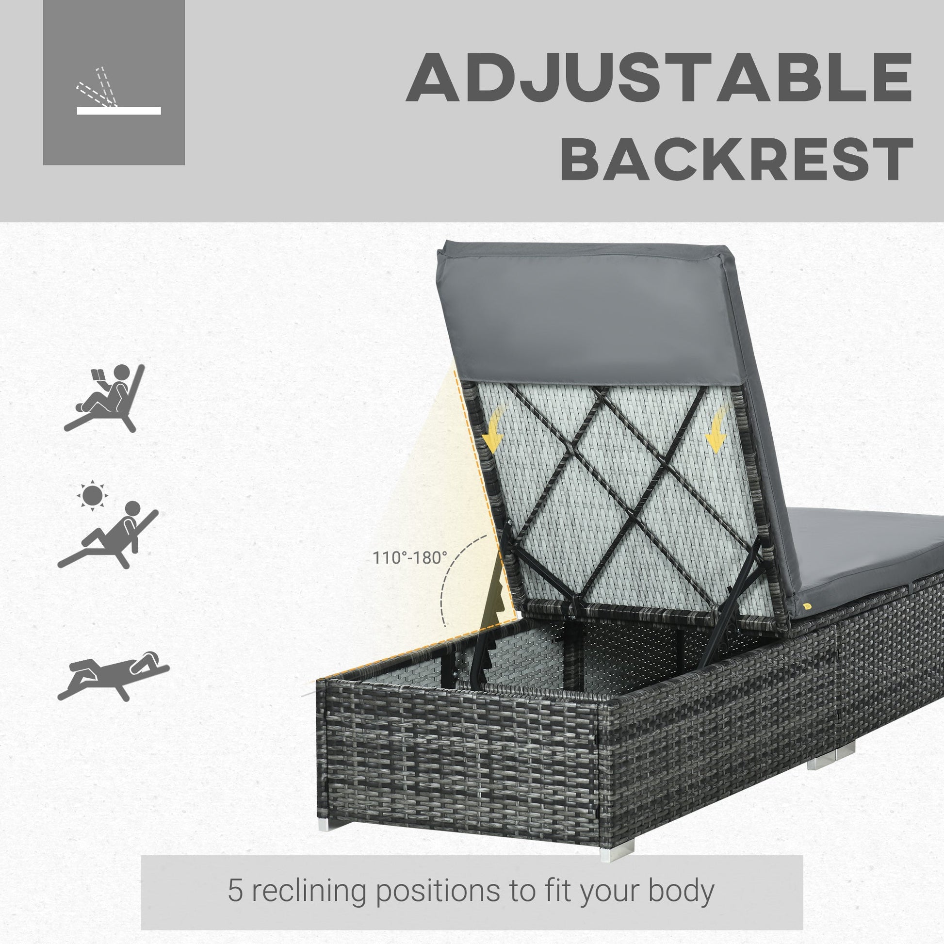 Rattan Sun Lounger Adjustable Garden Furniture Recliner Bed Chair Reclining Patio Wicker Grey