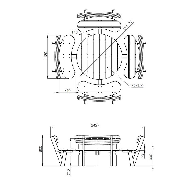 The Round Garden Table With Backrests is the ultimate picnic table design with a high-quality finish and comfort in mind. End users can relax in the garden, sitting back on the curved backrests. A parasol can also be incorporated in the umbrella hole so shelter can be taken if the weather is hot. With a robust design and quality smooth surfaces, the table allows eight people to dine in comfort making this picnic table ideal for summer BBQs. The table is designed to last using pressure treatment to protect it against any natural decay or deterioration. This treatment results in a natural green finish on the FSC sourced timber, resulting in a stylish robust table.