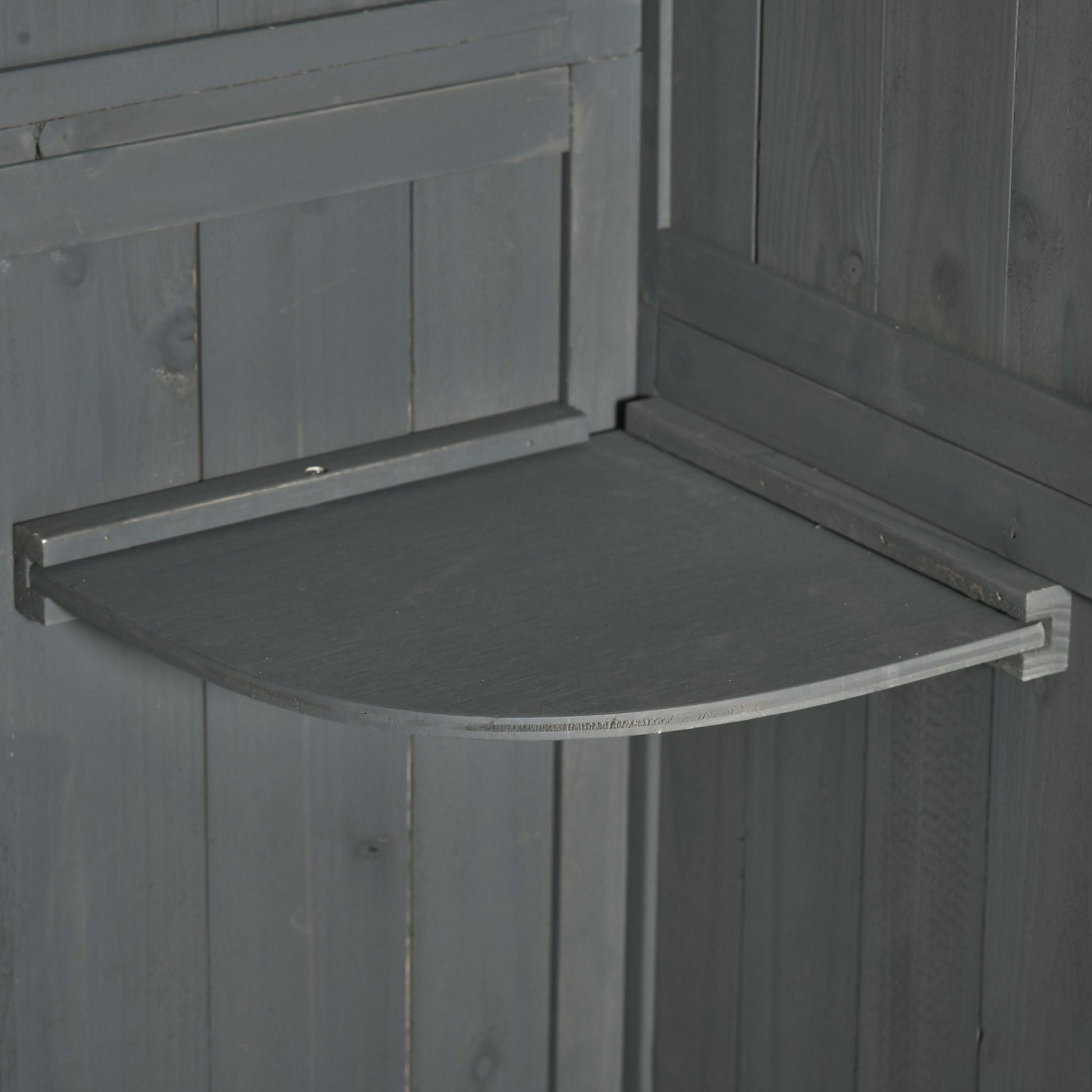 The backyard storage shed from Outsunny is an ideal solution for organizing all your garden tools and equipment. You can place small items on 3 shelves and store bigger tools in the larger area. This vertical storage shed is made of durable pine wood and cedarwood for a sturdy and strong construction. The wooden surface covered with waterproof paint and the roof with asphalt help provide added protection outdoors. The tool cabinet is designed to be an elegant and practical addition to your garden.