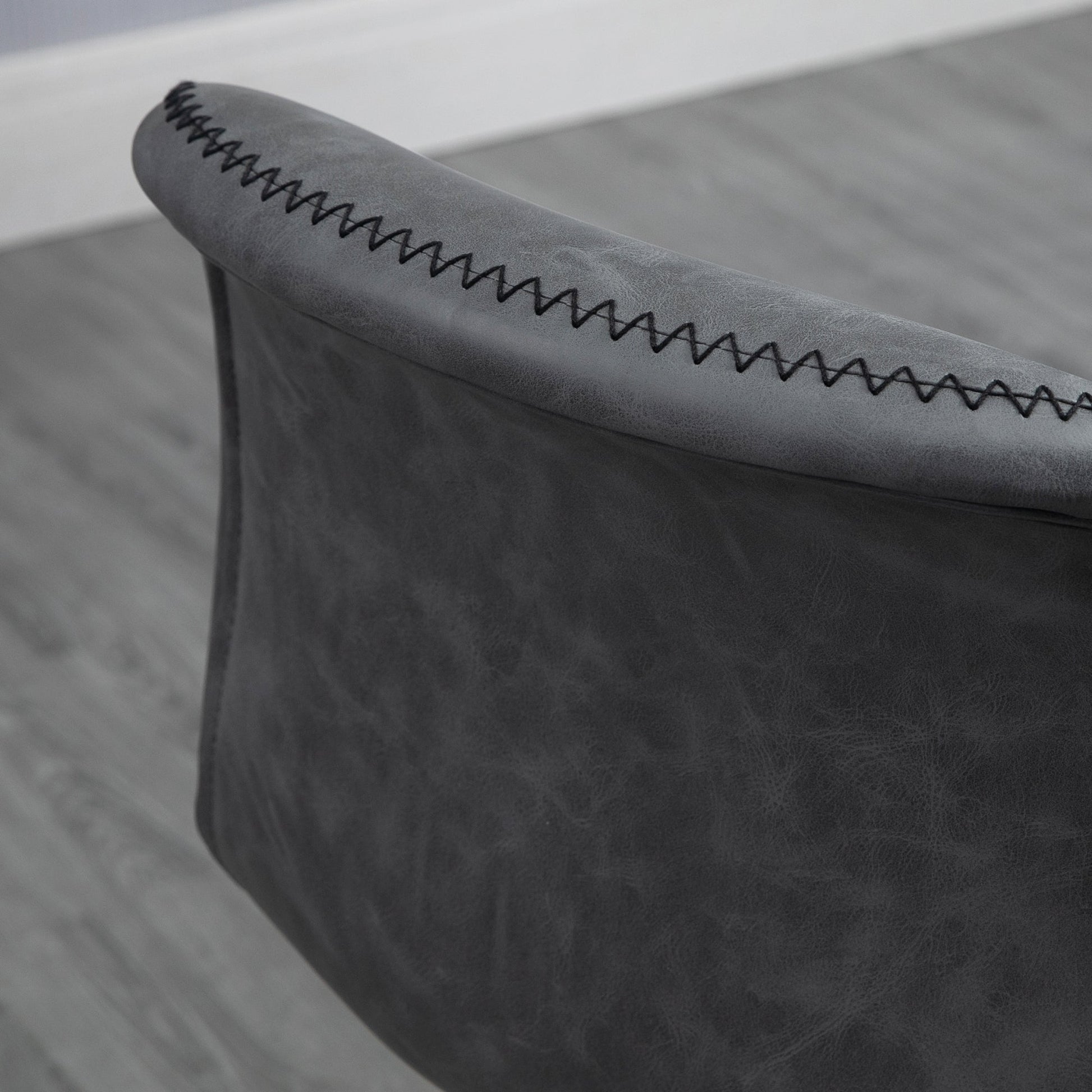 - Weathered PU leather upholstery is beautiful, with contrasting-colour stitching for impact
