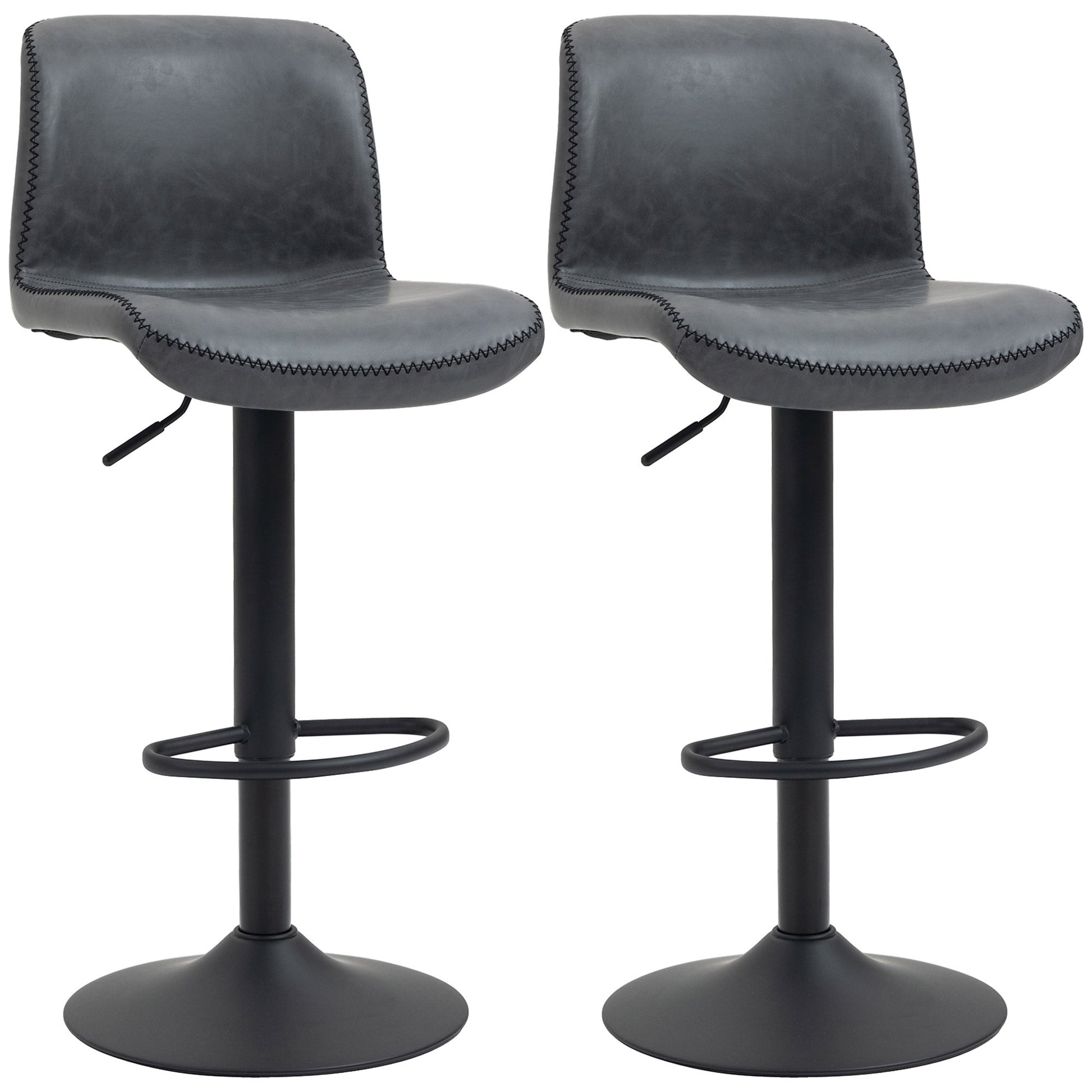 Forge an effortless look in your dining areas with these two bar stools from HOMCOM. The weathered PU leather upholstery serves up high, vintage style, with the contrasting-colour zig-zag stitching adding a stand-out point. The breakfast bar stools are filled with soft sponge to relax the body. With the large round base, which is made from metal, this stool keeps upright and steady when in use. Height adjustable, finished with a handy footrest.