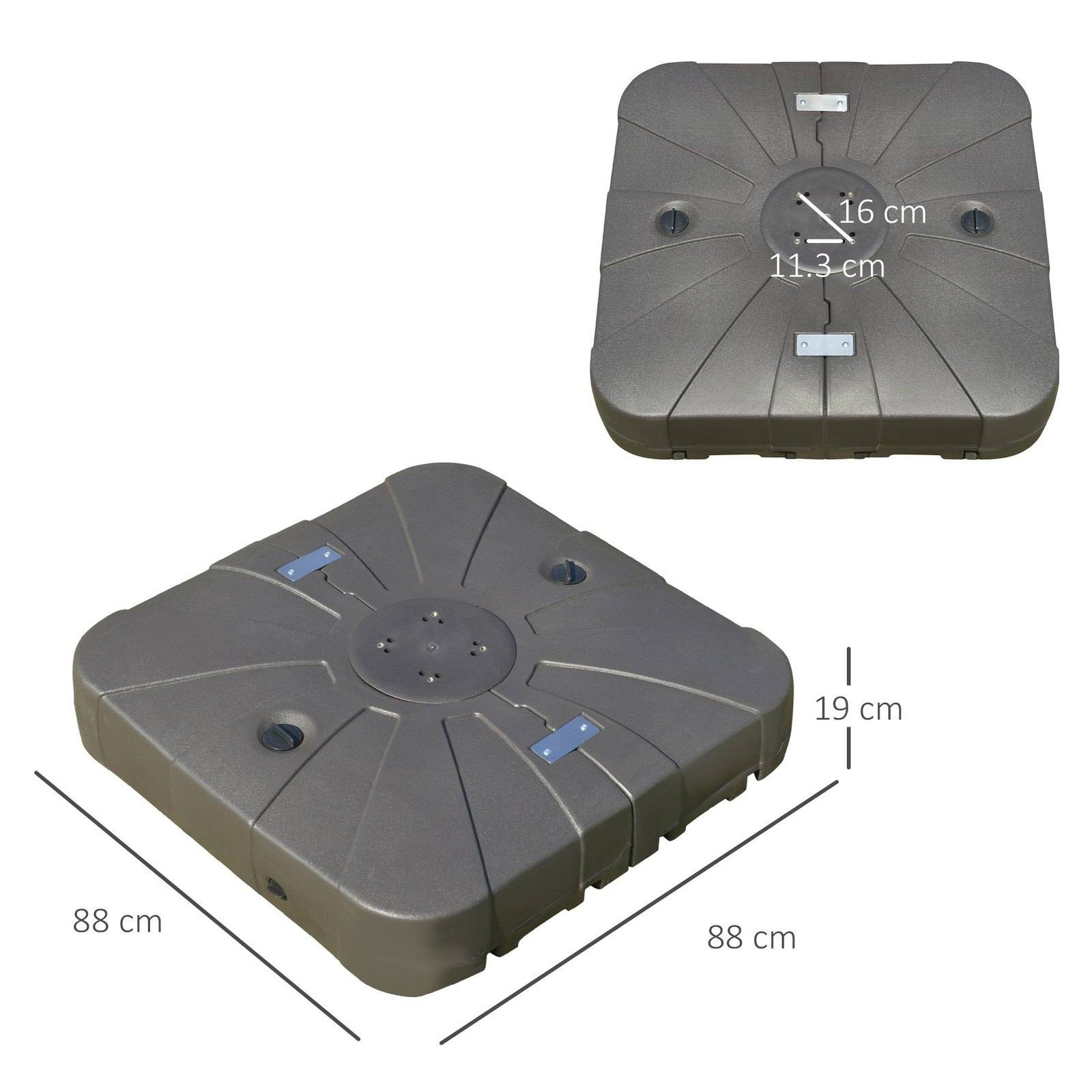 Holding your stylish and cool 360° rotating Cantilever umbrella all day long just got a lot easier - thanks to this base and cross bar from Outsunny. It can be filled with either water of sand, with two holes to fill up quickly and easily. Four wheels ensure smooth and easy movement. You can now enjoy the sun without your parasol annoyingly moving around all day long.