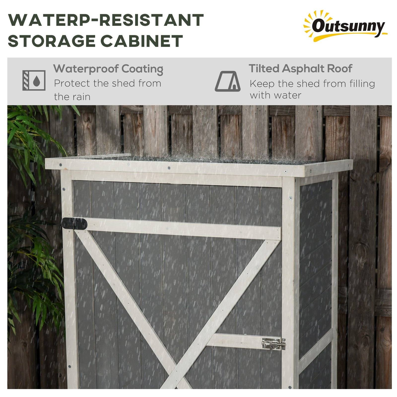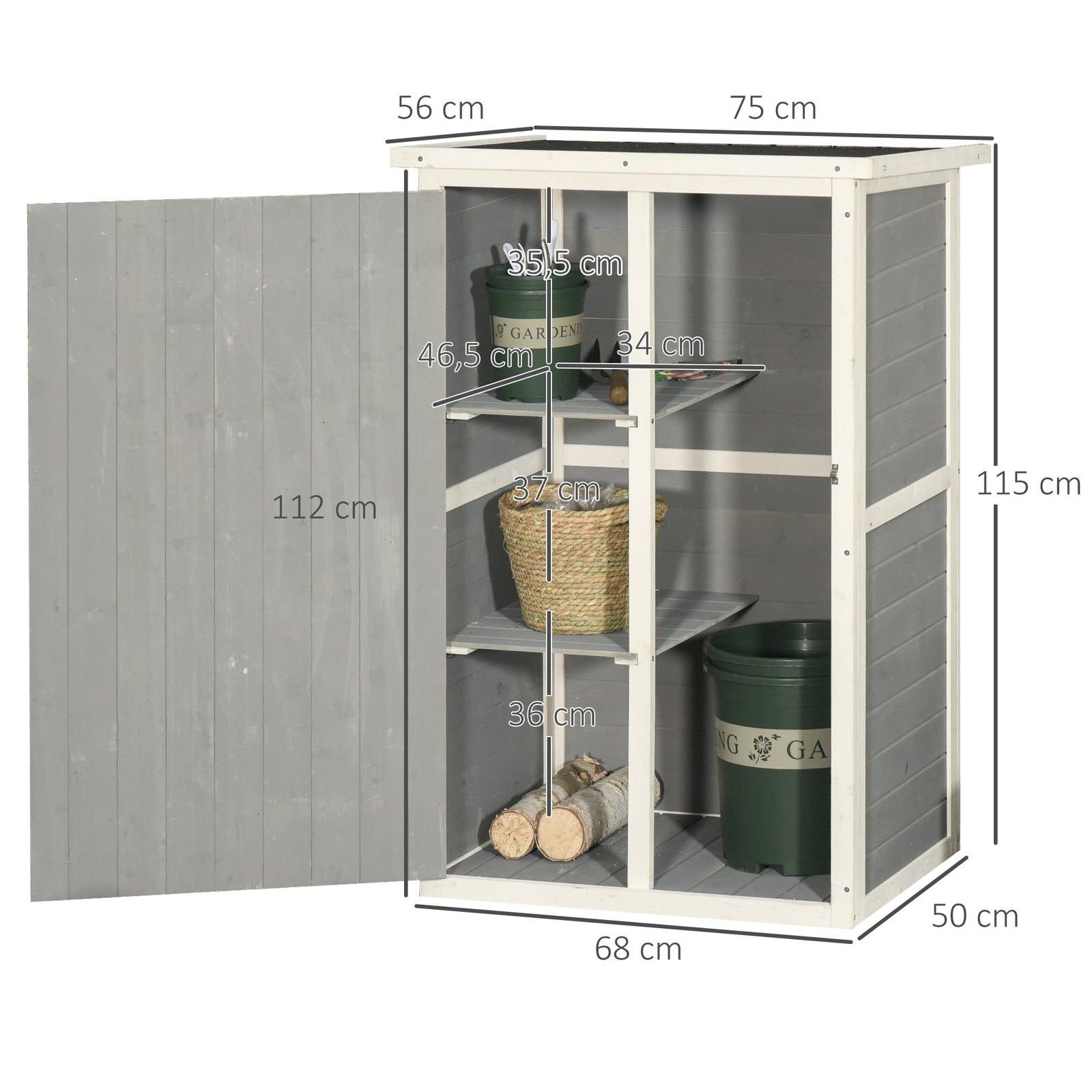 Ensure you have somewhere to keep your garden equipment, even when space is limited with this storage shed from Outsunny. Using fir wood for the outdoor shed body, with a waterproof paint finish for protection against the elements, tool cabinet's compact 115 x 75cm design fits into smaller spaces easily. Inside there are two shelves for smaller items, whilst the open right side is perfect for larger equipment. Its finished with an asphalt-covered sloped roof to protect the inside. A fantastic way to get your garden tidy and organised.