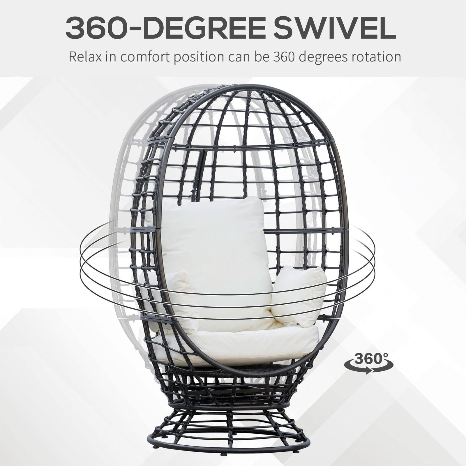 Outdoor seating doesn't come much better than this: this Outsunny swivel egg chair. A large, individual seat, which offers plenty of room, comes with padded cushions: this chair doesn't scrimp on comfort in the slightest. A powder coated steel frame for a strong, supportive structure, with wicker wrapped around for style. The seat swivels a full 360° - swish from side to side for ease. A private corner seat, or for the communal - do it with this number.