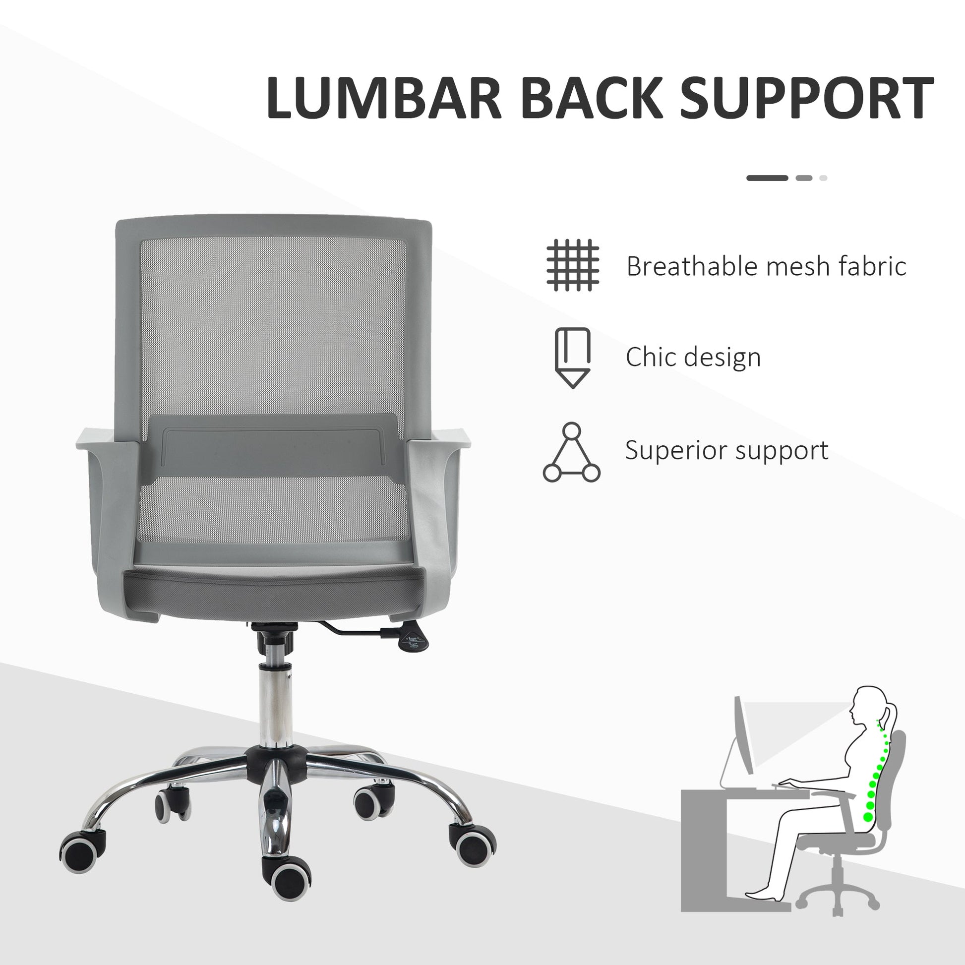 Vinsetto Ergonomic Desk Chair Mesh Office Chair with Adjustable Height Armrest and 360° Swivel Castor Wheels Grey