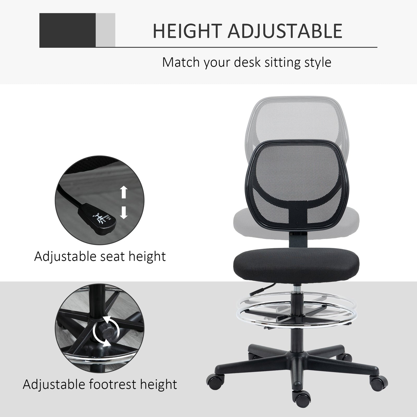 A quality chair needs to be comfortable even after sitting for a long time. This Vinsetto draughtsman chair features thick padding and breathable mesh fabric to offer you the comfort you need. The mesh office chair with height adjustable seat and footrest is designed to fit your sitting style and ensure you are able to be productive. Without armrest, you can sit freely and put this chair under the table to save space. Get the most out of your working time with our ergonomic chair from Vinsetto.