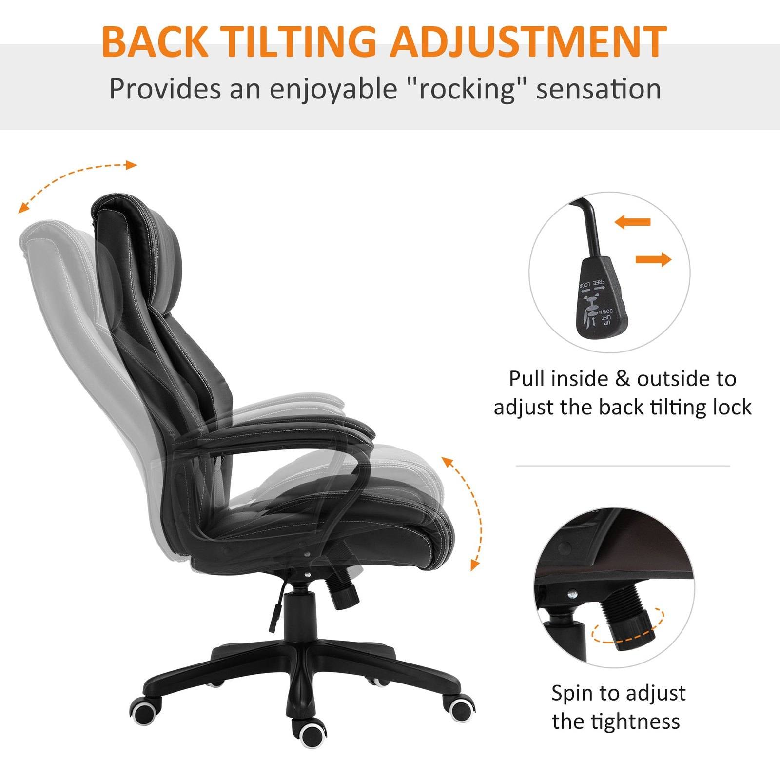 - Adjustable tilt tension allows the chair to rock forwards and backwards gently