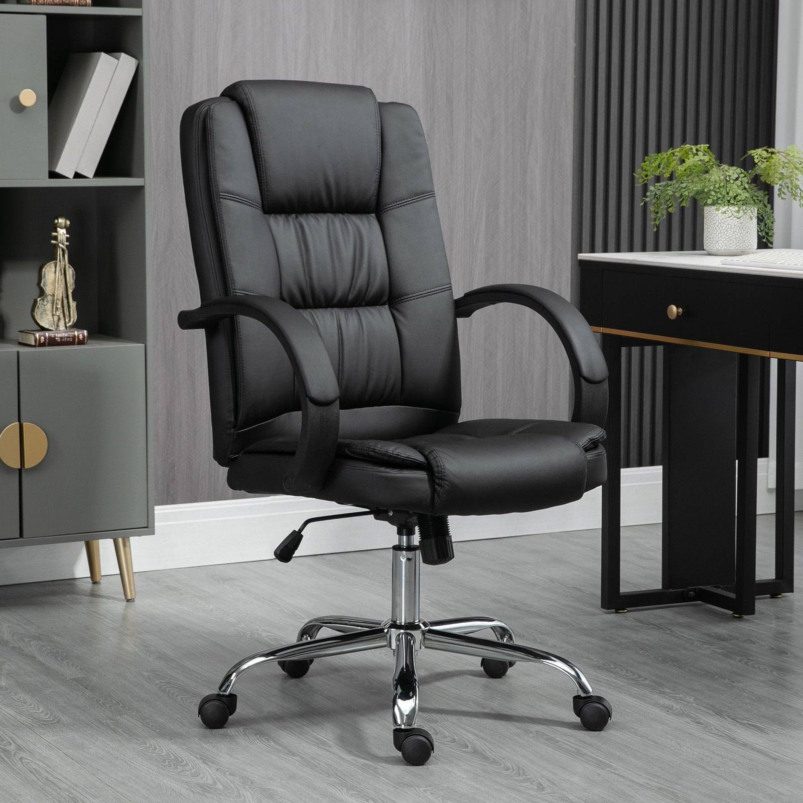 Don't let an uncomfortable seat ruin your productivity. Seat in this sleek Vinsetto computer chair and feel your productivity increase. Made with comfort in mind, this desk chair for home office with a 360-degree swivel allows you to easily move around your workplace and gives you the flexibility you need. You can raise or lower this comfy chair's seat for personal customization and rock smoothly to relax. A great addition to your home office or another workplace.