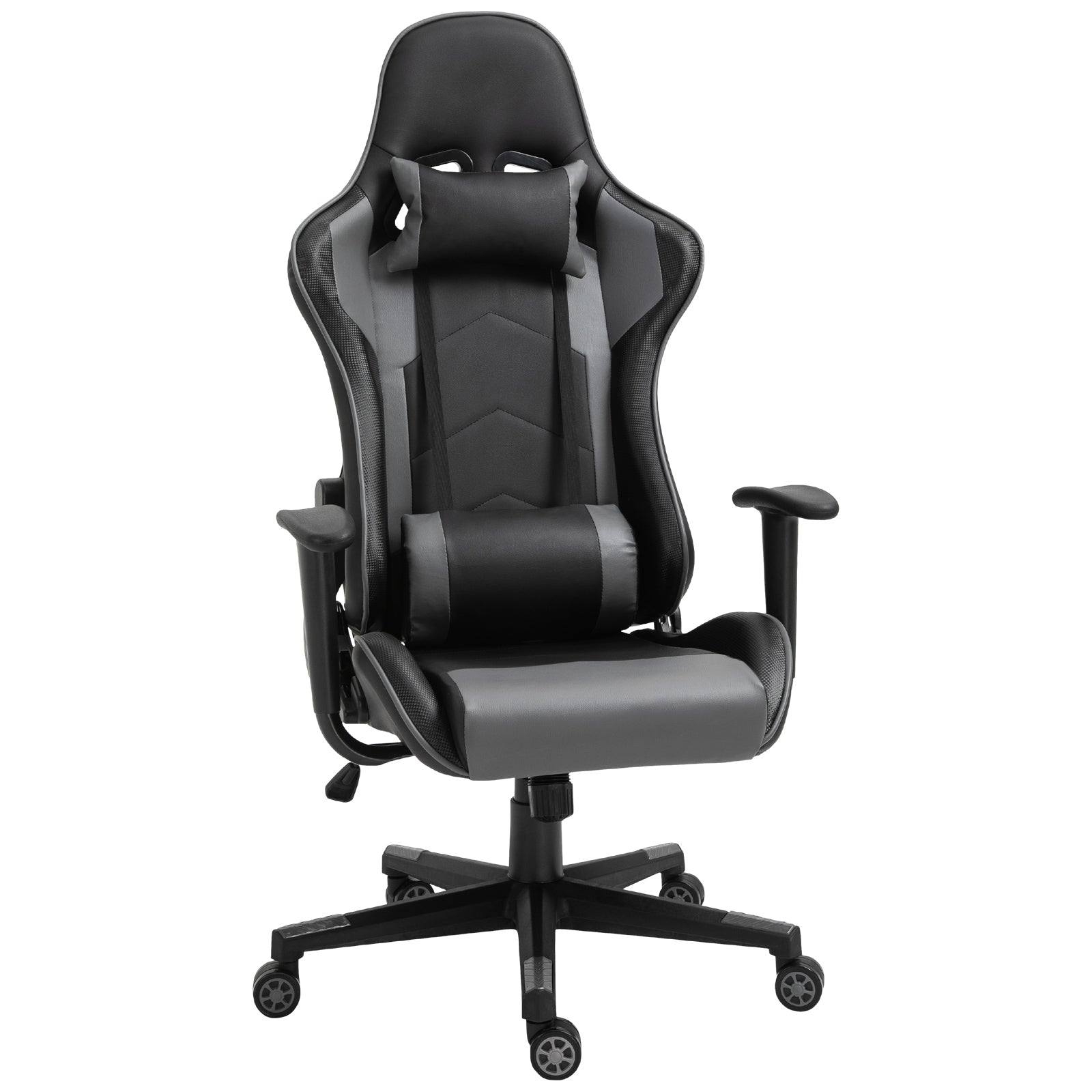 Get set for some serious style in your gaming room with this PU leather office chair from Vinsetto. Generous in comfort and support, our gamer chair features a wide seat, a high back with air-flow panels and armrests. Thick padding all over provides continual comfort, with PU leather upholstery which is easy to clean and looks great. The desk chair has adjustable height and is finished with five wheels on the base allows easy movement. A fantastic balance of style and functionality.