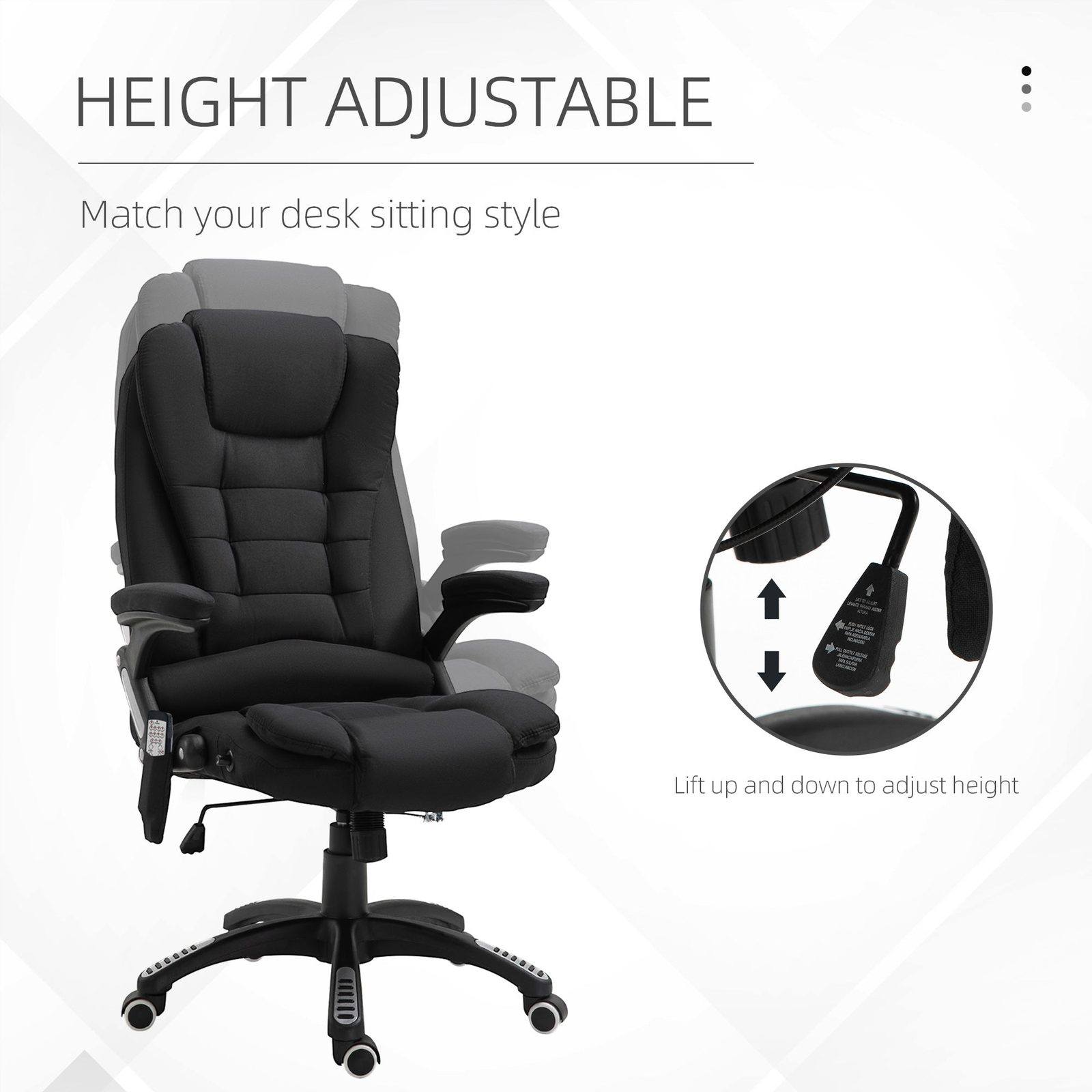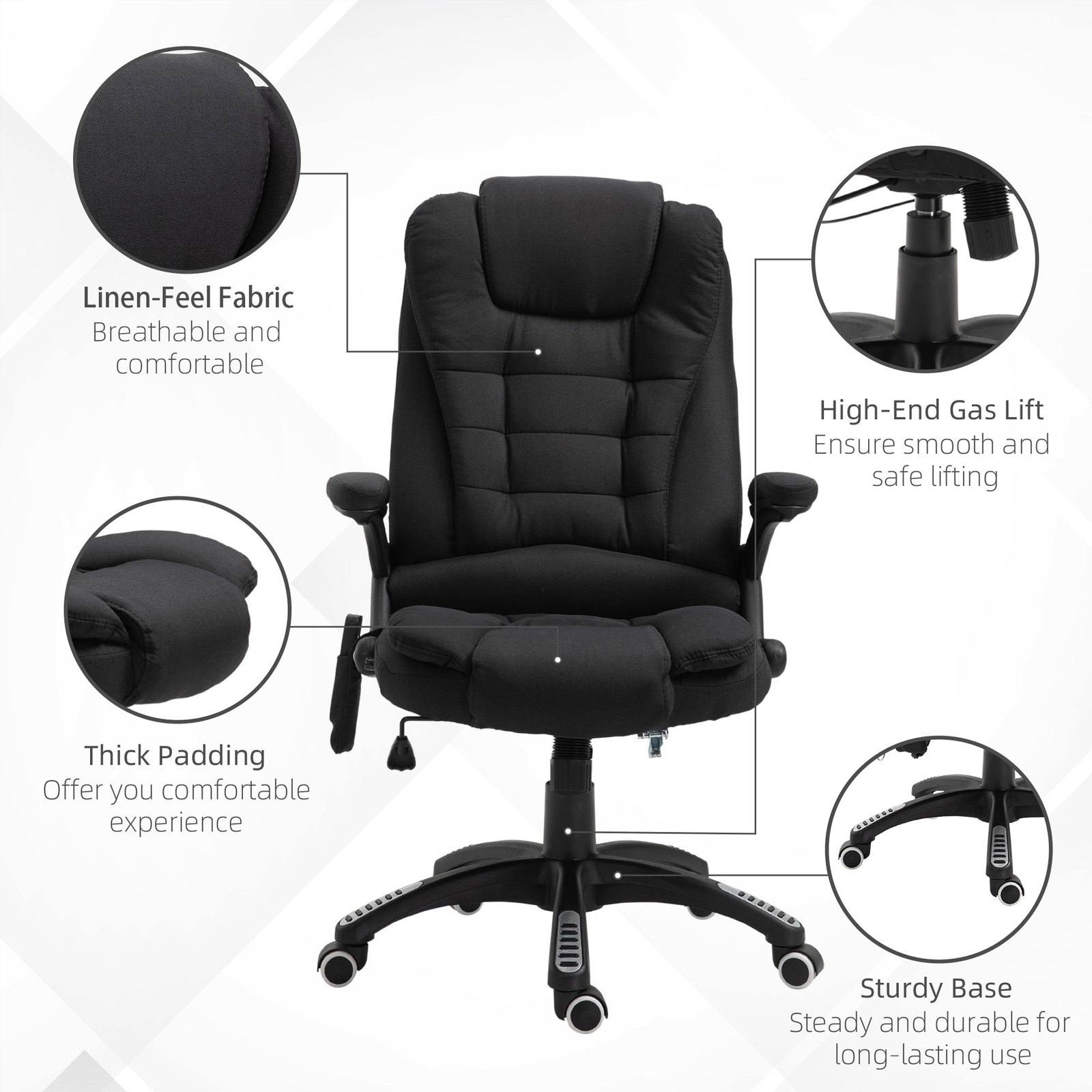 Vinsetto Massage Recliner Chair Heated Office Chair with Six Massage Points Linen-Feel Fabric 360° Swivel Wheels Black
