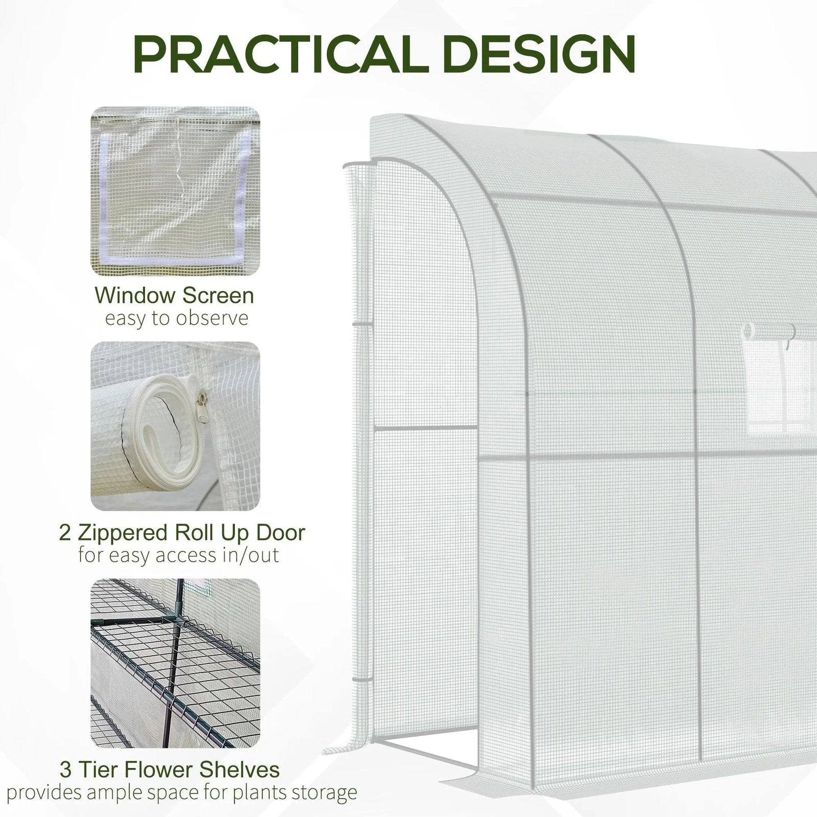 Walk-In Lean to Wall Greenhouse w/Window