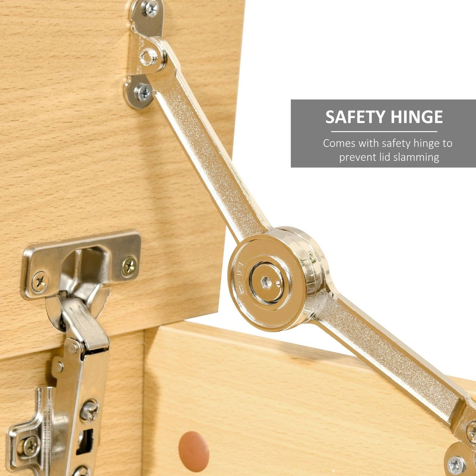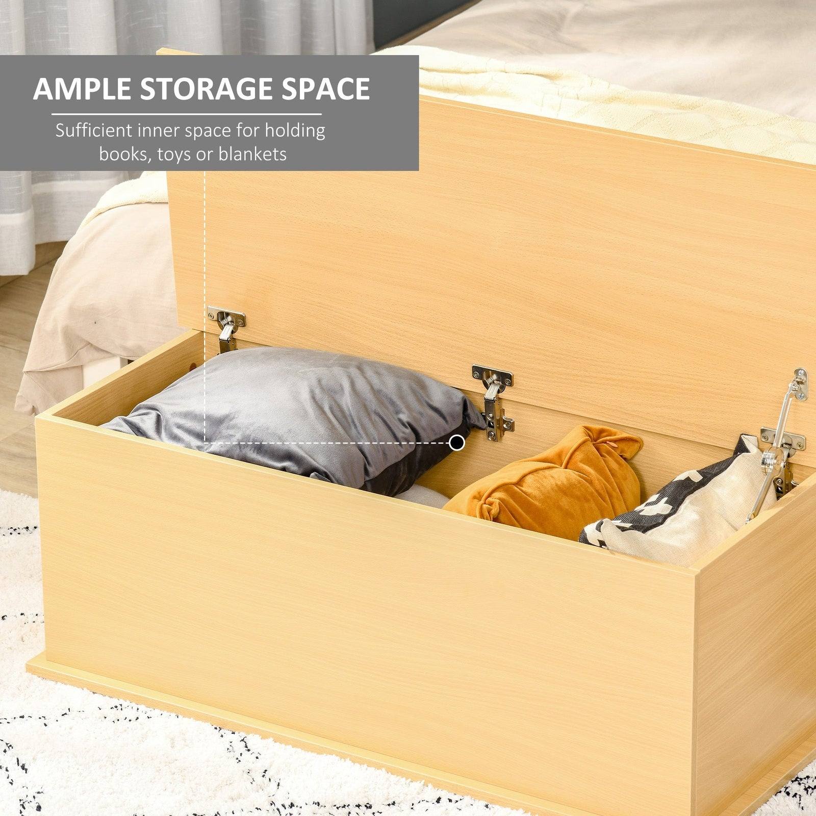HOMCOM offers the ideal storage solution to all your organising needs with this simple modern designed storage chest. The sturdy wooden construction makes the lid and the internal space hold weight up to 60 kg each. Constructed to offer an ideal decorative and practical addition to any room decor.